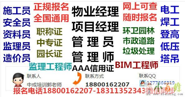 如想了解更多报考证书可联系中成培训郭老师电话188-0016-2207QQ1277-366-319微信188-0016-2207发证机构考试合格后由建设部颁发全国通用的《全国物业管理企业经理岗位证书》...